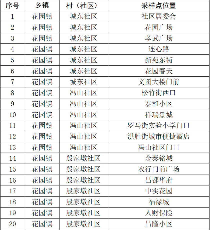 孝昌县城区区域核酸检测采样点分布